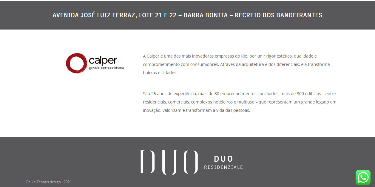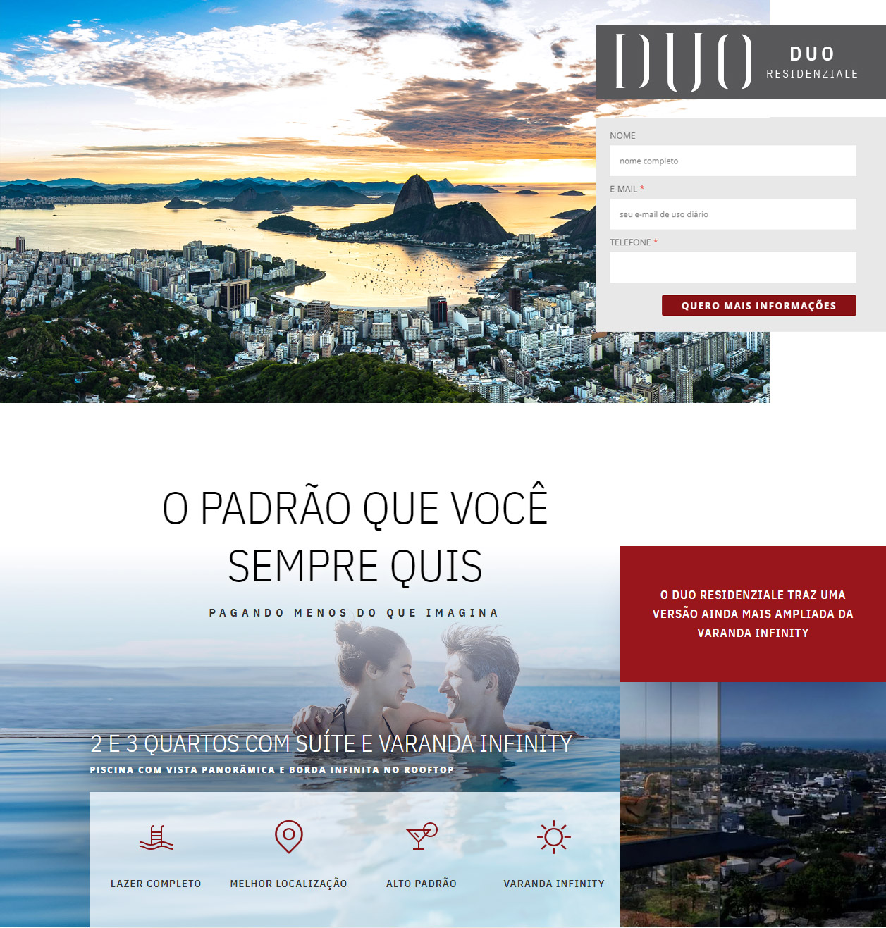 Fomos chamados para criar um minissite para o DUO Residenziale, com a missão de mostrarmos seus invejáveis e muitos diferenciais, e com o objetivo de gerar novos leads interessados na compra.